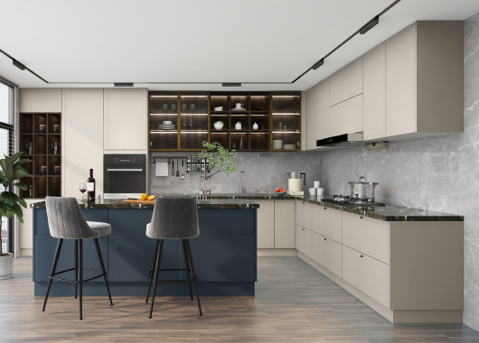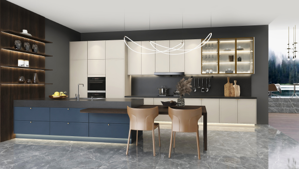 將深邃的藍(lán)與高雅的灰融入現(xiàn)代美式色彩美學(xué),精致的元素和浪漫的色 彩,將熱情自由的氛圍最大化地呈現(xiàn),撩撥著視覺感官,以溫婉的設(shè)計語言描繪浪漫的生活場景。