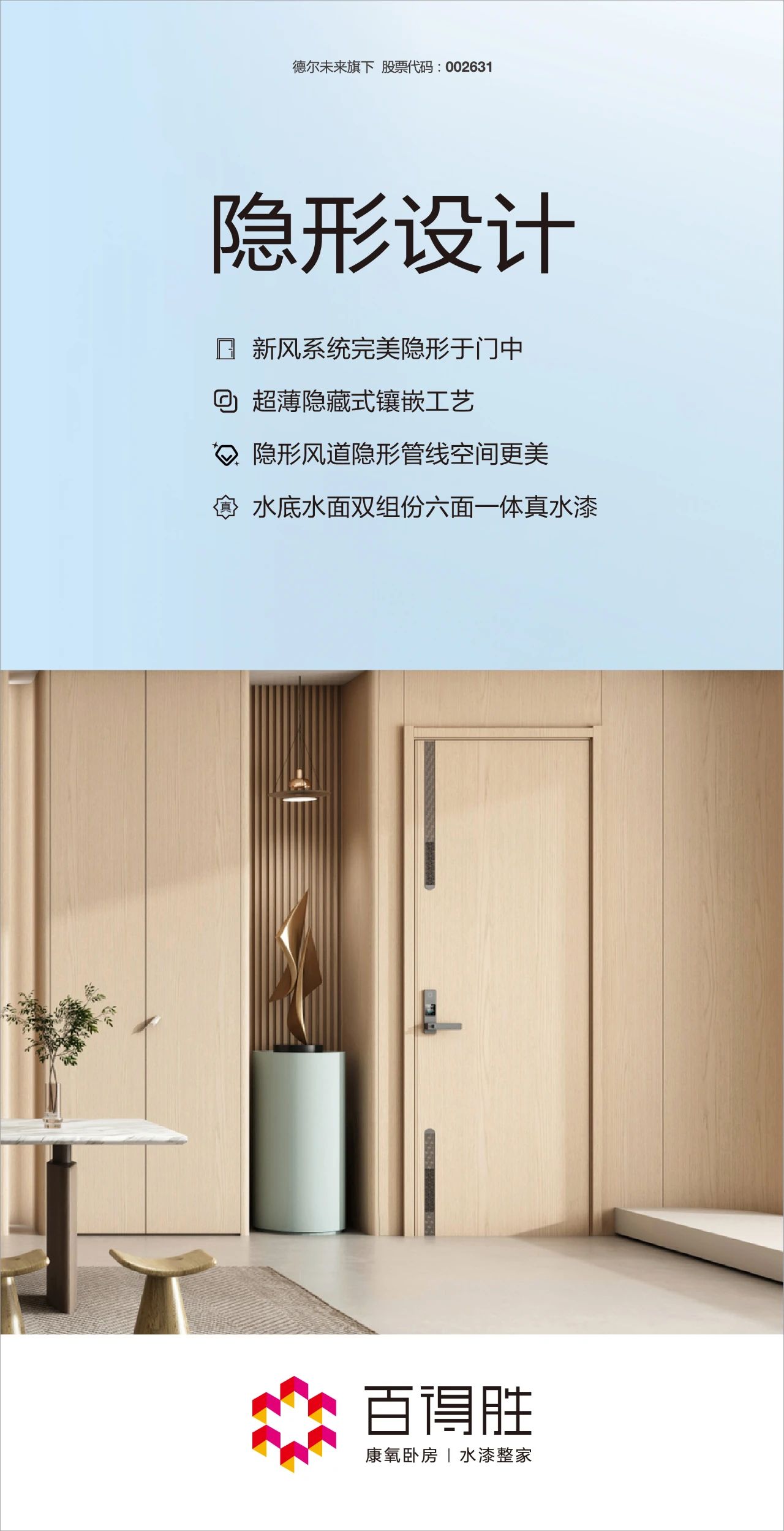 無需大面積破壞墻面,不用在墻上打很多孔,也不用忍受傳統(tǒng)新風(fēng)復(fù)雜的管道。百得勝水漆新風(fēng)門,創(chuàng)新將新風(fēng)系統(tǒng)完美隱形于室內(nèi)門中,超薄隱藏式鑲嵌工藝,讓整個空間渾然一體。真水漆工藝、72款花色,讓輕高定細(xì)節(jié),放大空間之美。