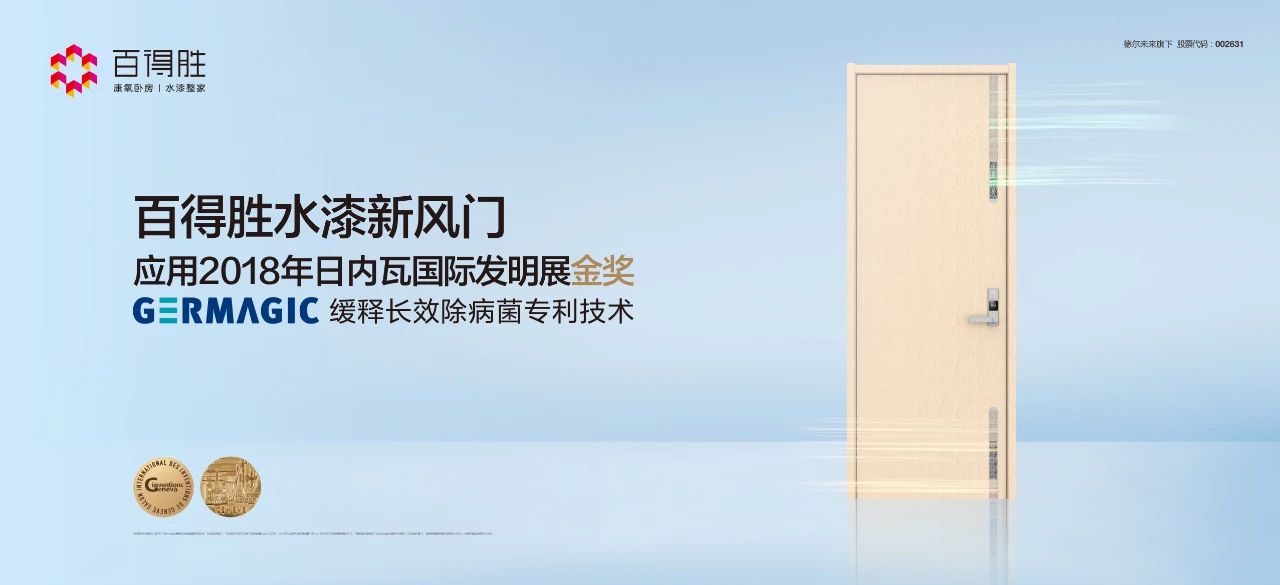 百得勝水漆新風(fēng)門,應(yīng)用2018年日內(nèi)瓦國際發(fā)明展金獎Germagic緩釋長效除病菌專利技術(shù),99.9%病毒去除率、99.9%細(xì)菌去除率,擁有4大核心優(yōu)勢,為您開啟健康家。