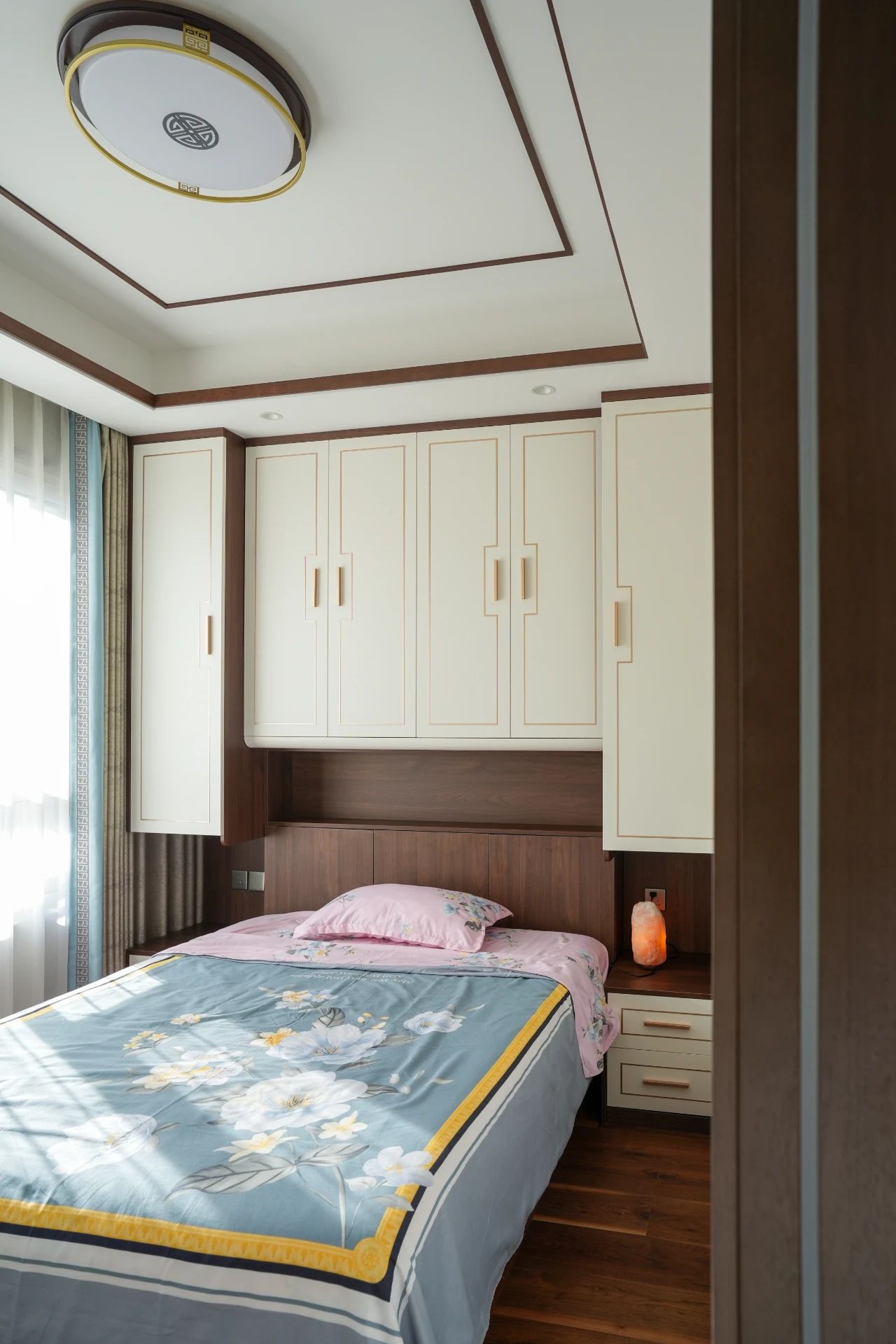 次臥:一家贊譽(yù)的溫情細(xì)節(jié)次臥空間以低飽和度米色為主,家具圓角處理、凹凸錯(cuò)層防磕碰,細(xì)節(jié)處處體溫情關(guān)懷。柜體內(nèi)部增設(shè)感應(yīng)燈帶,方便夜間取物,貼心設(shè)計(jì)贏得業(yè)主一家贊譽(yù)。